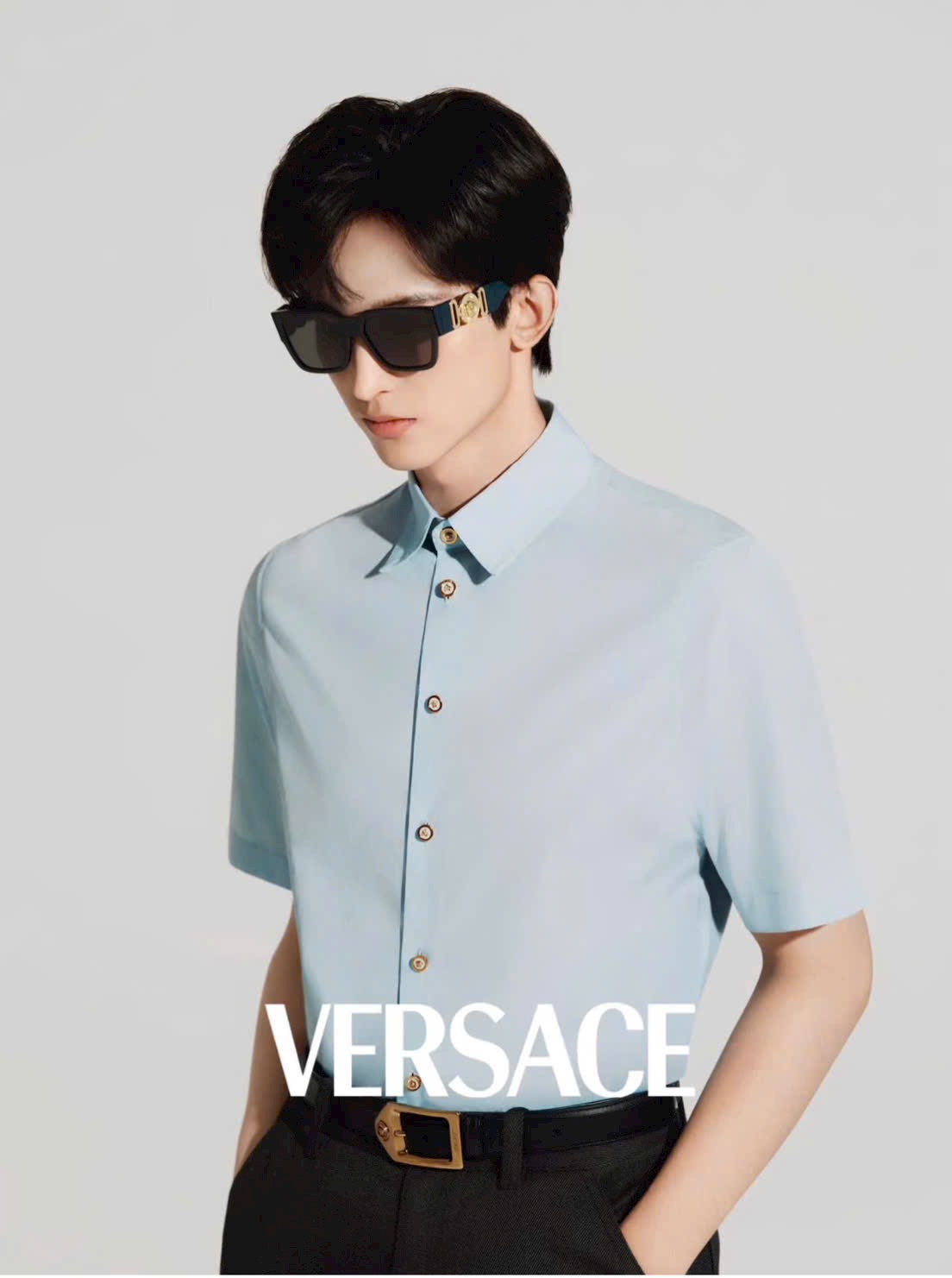 Khi kết hợp với kính mát Versace gọng to viền đen điểm logo Medusa vàng, tổng thể trở nên hiện đại và sắc sảo hơn — vừa lịch lãm, vừa cá tính. Bộ đôi này tạo ấn tượng về sự chỉn chu mà không cầu kỳ, phù hợp cho cả phong cách công sở lẫn dạo phố cao cấp. ✨👔🕶️
