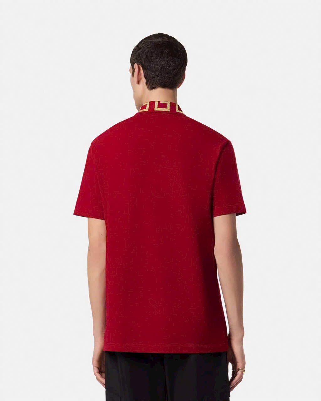 Logo Medusa đậm chất Versace được thêu tinh xảo ở ngực, tạo diện mạo quyền lực và cuốn hút.